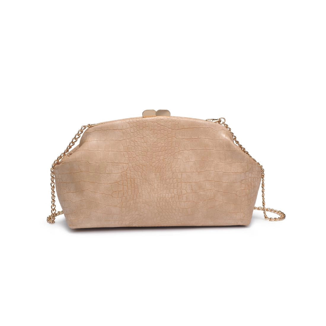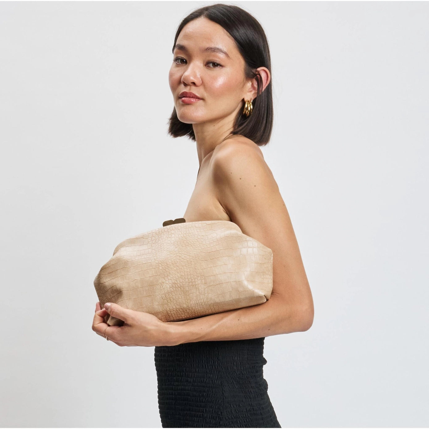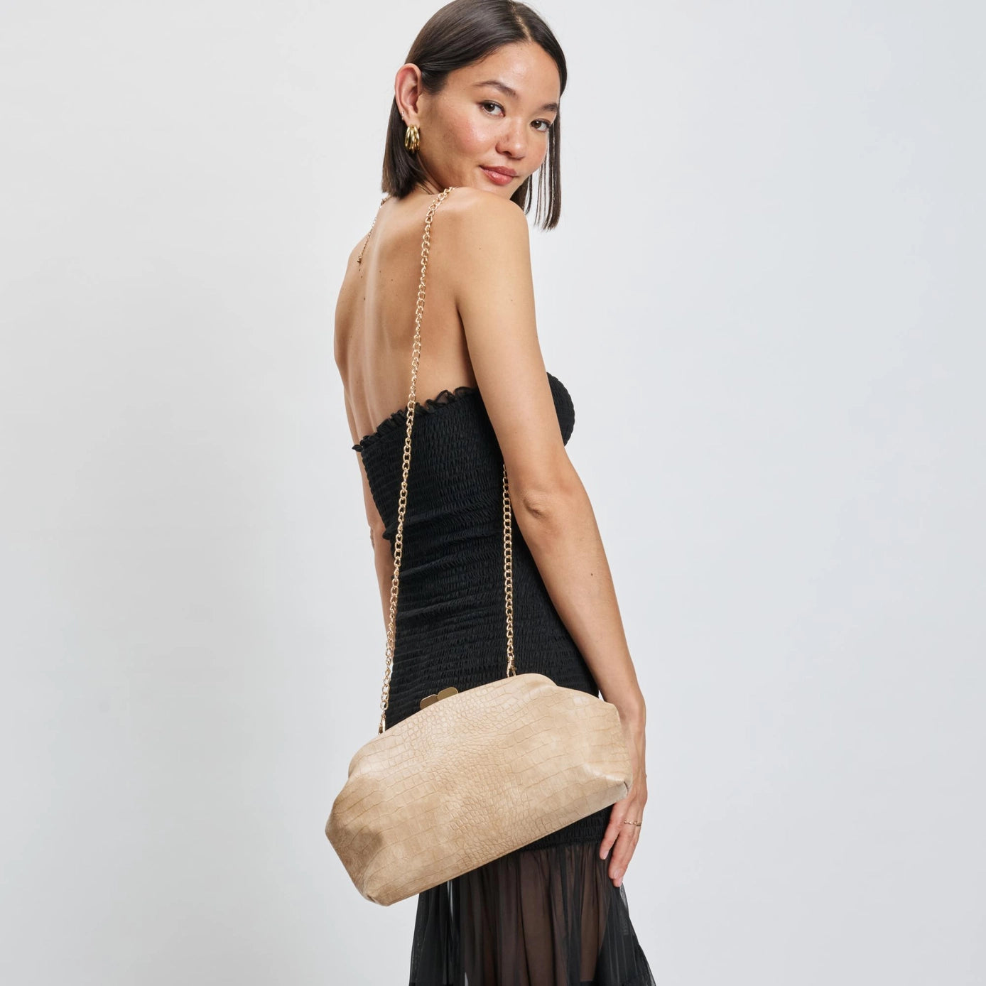 The Camille Clutch combines timeless elegance with modern sensibility. Crafted from luxurious vegan leather in a striking croc print, this sophisticated clutch features polished gold hardware and a secure snap frame closure. The detachable chain strap offers versatile styling—carry it as a clutch or wear it crossbody. Inside, a fabric-lined interior houses a convenient zip pocket for organizing essentials. Perfect for elevating any occasion, from evening events to refined everyday moments.