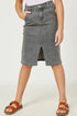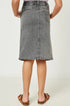 Constructed from quality washed denim fabric, the Kendall Midi Skirt offers both style and functionality. Featuring a convenient button-zip closure and functional front and back pockets, this skirt is perfect for any girl looking for a versatile and chic wardrobe staple.