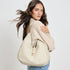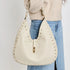 Discover the Olivia Hobo, where rebellious spirit meets refined grace. This vegan leather beauty features a pebbled texture adorned with gleaming studs and gold-tone hardware that catches the light with every move. The turn lock loop closure whispers sophistication, while the printed fabric lining sets the tone for organized wanderlust. One zip pocket and two slip pockets keep your world in order without sacrificing style. Effortlessly edgy, undeniably elegant—the perfect companion for the free-spirited soul.