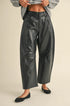 The Ridge Faux Leather Barrel Pant delivers contemporary edge with a refined silhouette. Crafted from premium pleather, this piece combines durability with a luxe aesthetic while remaining vegan-friendly. The barrel leg cut creates a modern, tapered profile that works seamlessly from day to evening. Structured yet comfortable, these pants pair effortlessly with everything from minimalist tops to bold statement pieces. A versatile essential for those seeking polished, fashion-forward style.