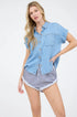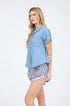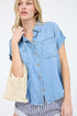 The Wren Button-Up combines practical design with refined style. This chambray shirt features convenient front pockets, structured yoke detailing, and short sleeves for warm-weather versatility. The classic button-down construction offers a tailored silhouette that transitions effortlessly from casual to professional settings.